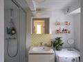 De aparte badkamer is uitgerust met een wastafel, douche, toilet en aansluiting voor een wasmachine.
