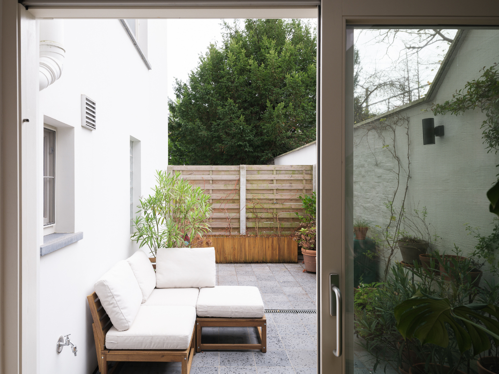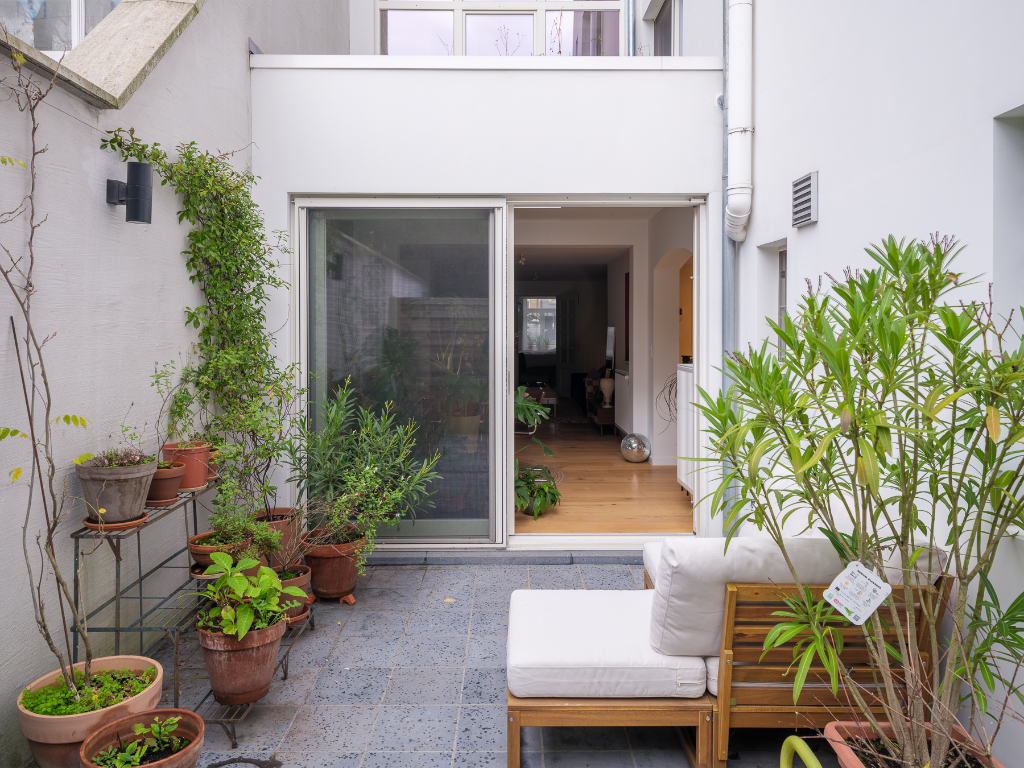 De zonnige en goed georiënteerde stadskoer is een echte troef en biedt een aangename buitenruimte in de stad.